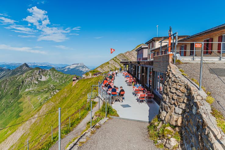 At the summit you will find the Rothorn Kulm mountain restaurant and hotel with its grand panorama terrace and breathtaking views over the Berner Oberland. It is a non smoking restaurant and is wheelchair accessible. The restaurant offers sumptuous breakfasts, hearty lunches and romantic à la carte evening dinners. In addition the open terrace is a wonderful way to watch sunrises and sunsets over the Bernese Alps and is the perfect backdrop to any memorable meal or occasion.