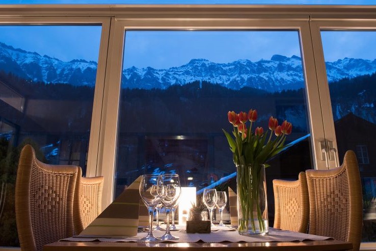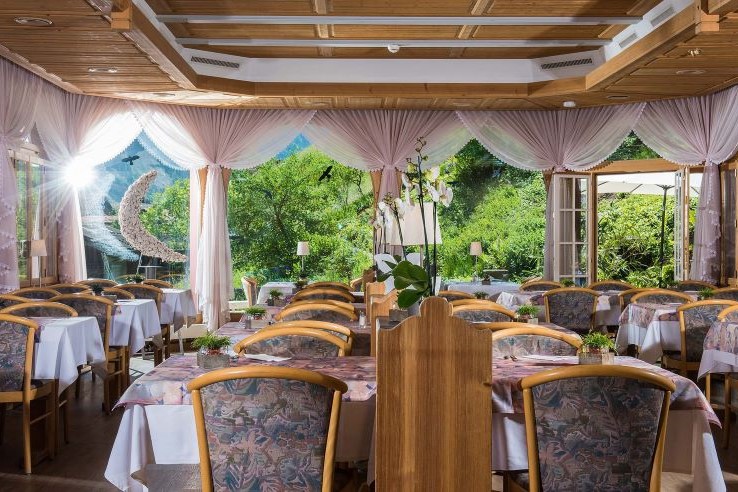 Serving an international menu with some Swiss specialities, the Gletscherstuba restaurant has a cosy open fire in the evenings and a convivial atmosphere. You may prefer to dine in the Conservatory with its spectacular views; in summer, the garden terrace allows you to enjoy your meal even closer to the mountains. Every evening the hotel offers delicious hand-made pizzas, cooked in the wood-fired oven. Breakfast is a buffet with a wide choice and is served in the dining room.