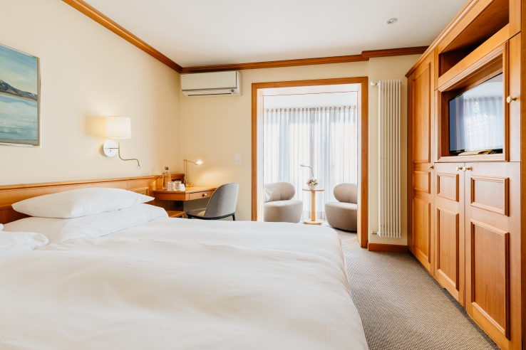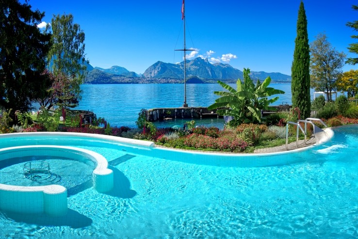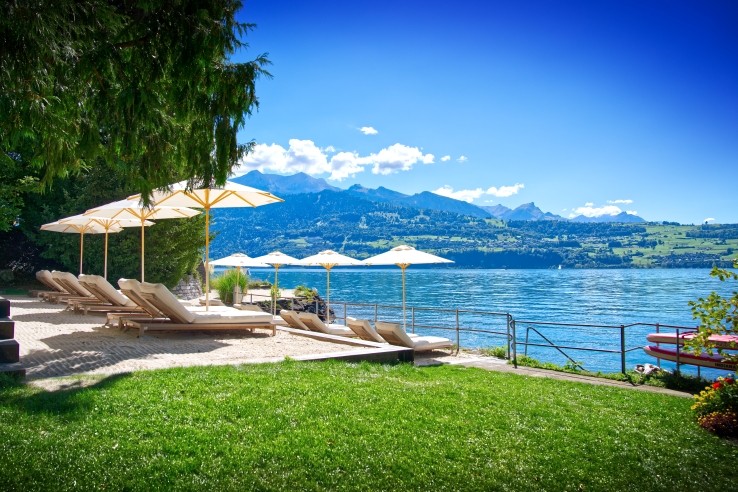 The Beatus has a wonderful position on Lake Thun, with views over the water and to the mountains of the Bernese Oberland beyond. There are plenty of walking paths in the immediate region and the small town of Merligen is close at hand. You can also take a relaxing cruise along the lake to Thun or Interlaken. The hotel offers the perfect place for summer relaxation, with its private beach and harbour, tennis courts, delightful gardens set up for sunbathing and a heated outdoor hydrotherapy pool. The extensive wellness facilities include a series of saunas, wellness baths and sensory showers, an indoor swimming pool, relaxation room, massage and beauty treatments (payable locally), gym facilities and a complimentary exercise programme. Dining takes place at the Table D’hôtes restaurant which has an excellent range of dishes, while L'Orangerie piano bar offers cocktails, lighter meals and spectacular views across the lake. The Seelounge is a stylish terrace, perfect for a drink at sunset.