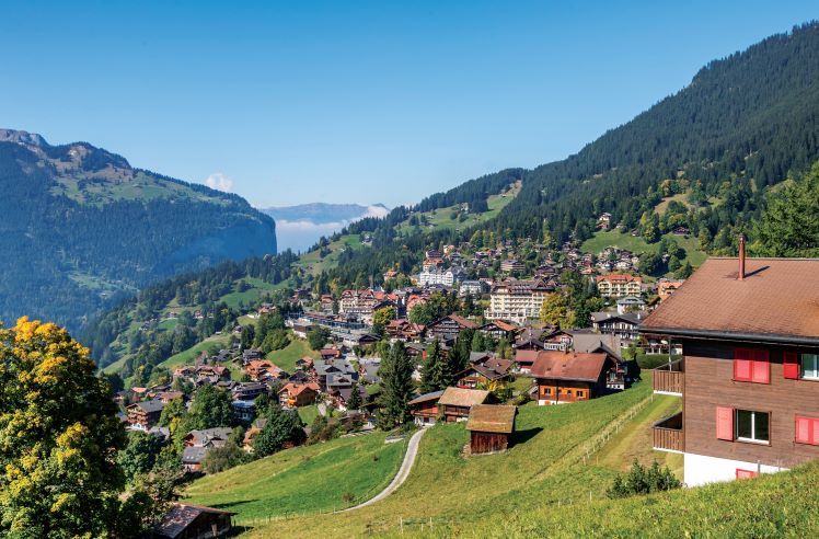 If you are looking for an idyllic Swiss mountain village, then traffic-free Wengen with its picturesque buildings and wonderful views is for you. To reach Wengen, you travel by mountain railway up from Lauterbrunnen. This delightful journey winds its way up in 14 minutes with an ever changing scene of the valley below.Â