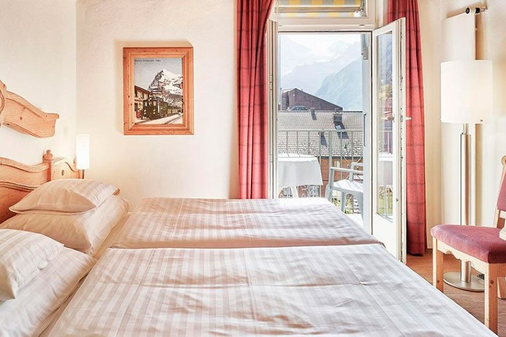 In a slightly elevated position at the end of the village centre, the Schönegg boasts wonderful views over the Bernese landscape. The hotel’s sun terrace in particular is a great place to relax in fine weather and enjoy the sweep of the village and the Jungfrau massif in the background. The atmospheric, wood-panelled restaurant is named ‘1903’, reflecting the hotel’s heritage. The kitchen team pride themselves on offering buffet breakfast and à la carte evening meals all prepared from carefully selected and regionally sourced products. In the honesty bar, you can order tea and coffee when you return from your day in the mountains, as well as helping yourself to after dinner drinks. The hotel also features a sauna which is perfect for tired muscles and you can book a massage (payable locally).