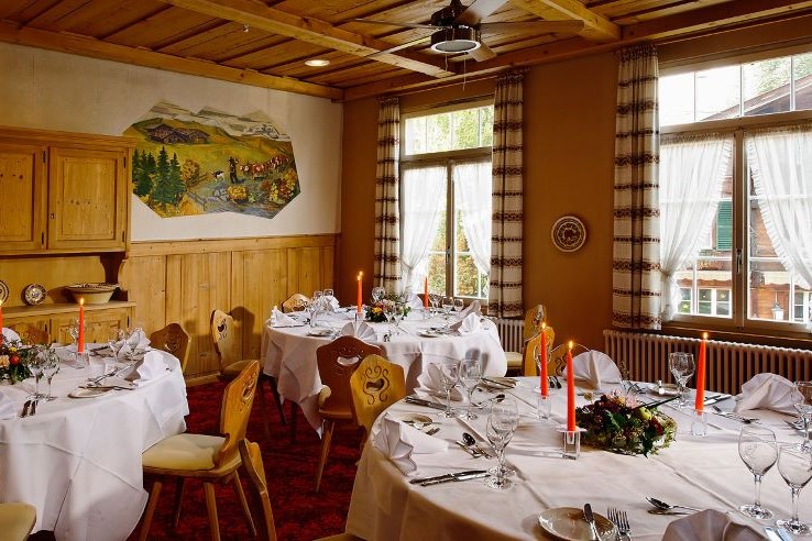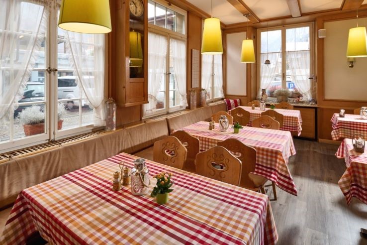This rustic style hotel is run by Bernard Müller who ensures that Swiss tradition is maintained at the same time as meeting the demands of today’s visitors. The hotel is fitted out in historic style with wood panelling and individually decorated bedrooms, to offer a most charming stay in this delightful village. You are sure to enjoy the elegant buffet breakfast, with an extensive choice which will set you up for the day. Indeed, the hotel's cuisine is renowned in the area and we can highly recommend the half board option of a three course dinner in the renovated Bärenstube restaurant. The half board menu offers a variety of options at exceptional value. For those wishing to try à la carte dining, there is the hotel's charming Arvenstübli restaurant which is decorated in the traditional 'Oberland' style and features hand-painted murals and intimate candle-lit dining. In good weather, nothing beats dining on the large garden terrace. The Bären also boasts an atmospheric wine cellar where you can enjoy a drink, and a fantastic cheese cellar featuring cheeses from around the region, including some produced on the local mountain from the hotel's very own cows! You may also wish to relax in the Bären's sauna after a day's sightseeing, and plan tomorrow's activities. This hotel has been known to us for over 20 years and is perfectly placed for a stay close to both the mountains and the town of Interlaken.
