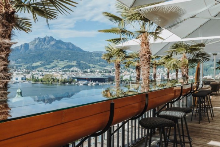 The Art Deco Hotel Montana has unbeatable views, with its elevated position which overlooks the town, the lake and the central Alps. The hotel is well situated right in the heart of Lucerne and guests can walk to the historic centre within 10 minutes or take a short bus ride. The hotel even has its own private funicular to transport you between the lakeside and Reception. This is a fabulous hotel in which to indulge yourself, starting with dinner in the Scala restaurant, which is recognised with 15 points in the esteemed Gault & Millau guide. The restaurant and its terrace have fabulous views, as does the Louis jazz bar which features smooth live music and over 130 varieties of malt whisky. You could also savour a drink in the atmospheric Hemingway Rum Lounge or sip cocktails in the stylish Beach Club rooftop bar. The Day Spa continues the art deco styling and has a wide range of beauty treatments and massages. We highly recommend this elegant hotel.