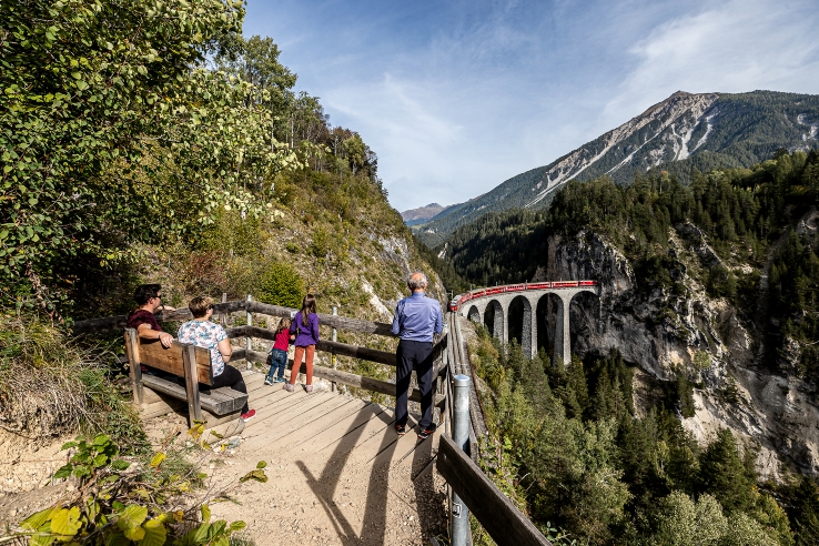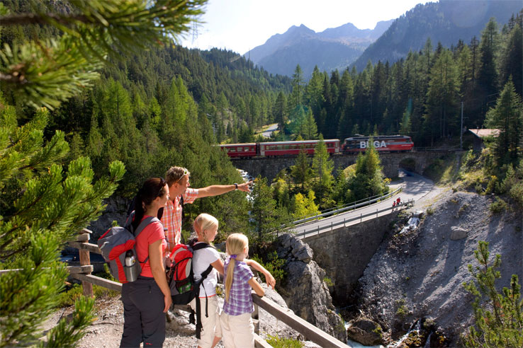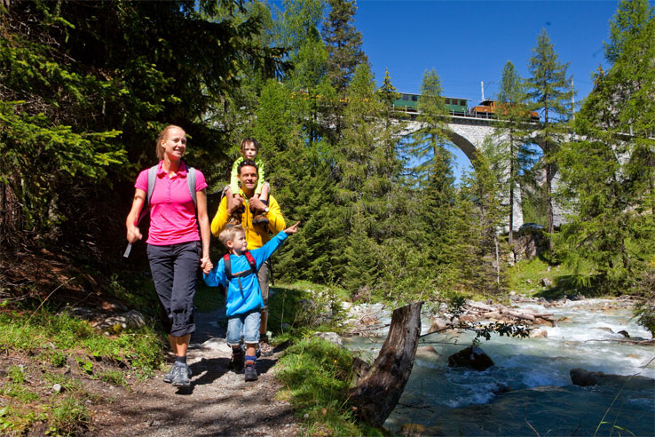 In this scenic region lies a network of lovely walking trails with close-up views of mountains, roaring alpine streams and elegant viaducts.  Some of the trails run parallel with the railway line - experience the same perfect interplay of landscape and technology which the World Heritage Line travellers enjoy - but on your own two feet and at your own pace. Information panels help you to appreciate the surrounding nature and culture.