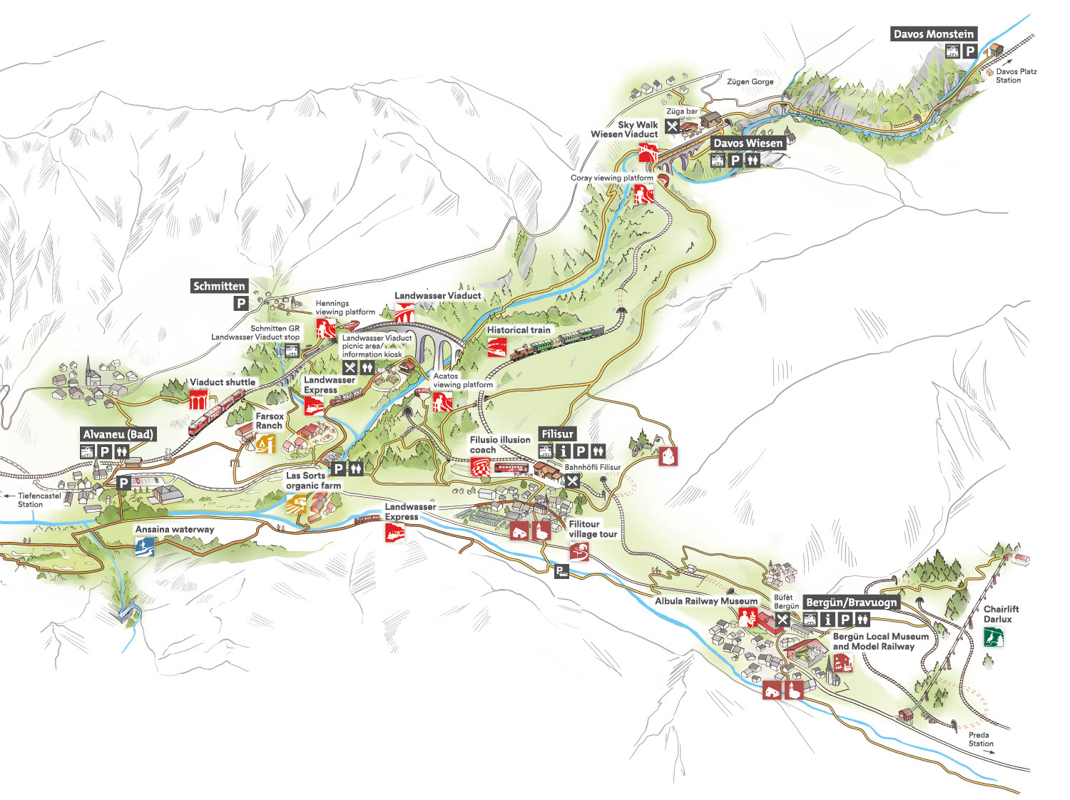 - Landwasser Express | The charming land train takes you from Filisur station to the Viaduct, with plenty of information and scenery en route. A BBQ site and picnic tables invite you to linger