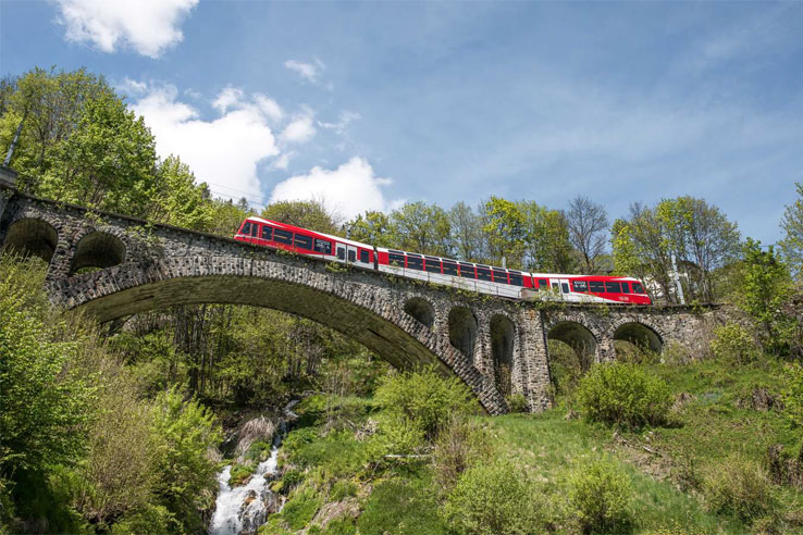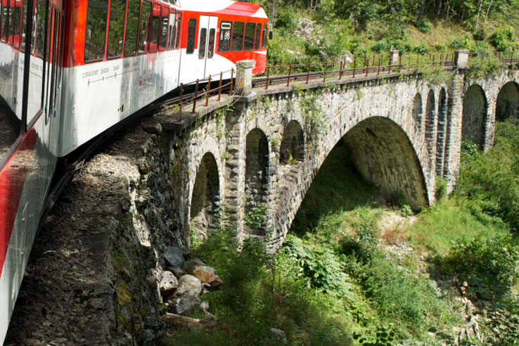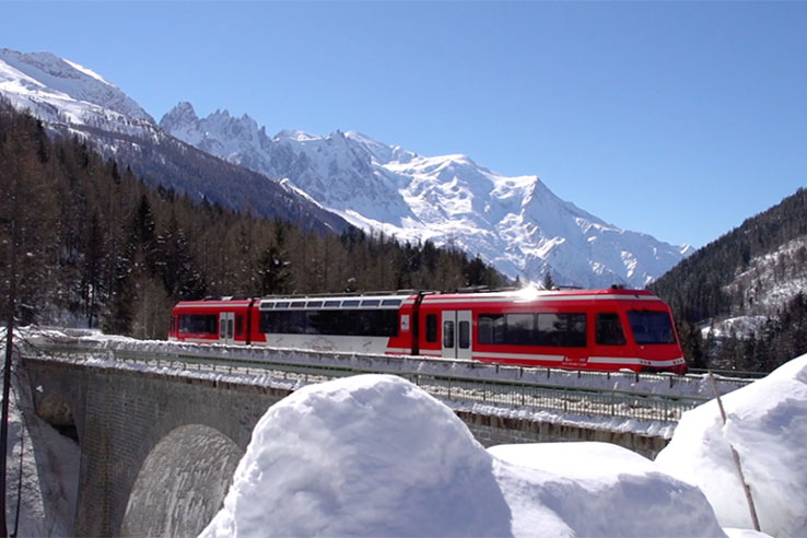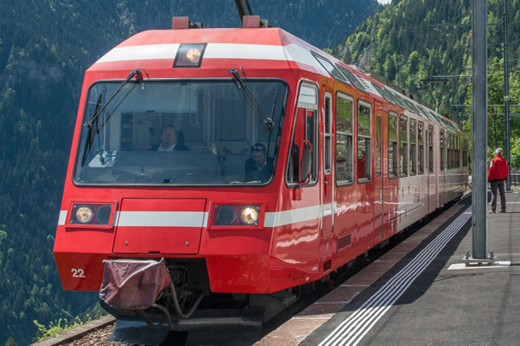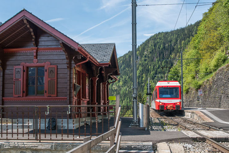 The Mont Blanc Express is a delightful, 90 minute journey which takes you from Martigny in the Swiss Alps to Chamonix in the French Alps. You will pass many scenic locations on the route including mountain villages and gorges before arriving into Chamonix with its glorious views of the Mont Blanc. Â