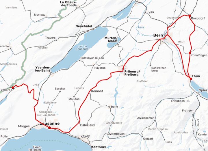 From your hotel in Lausanne, take a morning train to Vallorbe (45 minutes), from where the steam train departs. The full round trip is to be confirmed however, normally takes around 10 hours. We therefore recommend disembarking in Lausanne in the evening and making your way back to your hotel.