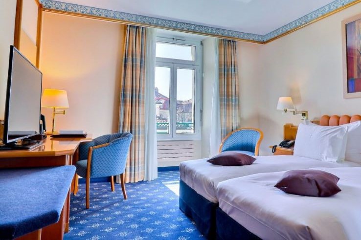 The hotel has a concept of 'slow living': an oasis of calm with a restful atmosphere and serene views, all within the lively city of Lausanne. Swiss authenticity meets Art Deco design touches here (the hotel dates from 1911) and the hotel follows an ethos of sustainability in their hospitality. The restaurant offers traditional French dishes and in the warmer months it is a delight to dine in the shade of the chestnut trees on the 'Marroniers' terrace. Buffet breakfast is included, and if you elect to stay on a half board basis your evening meal comprises 3 courses. After dinner, there is a cosy bar which is the perfect place for a nightcap. Hotel has recently added a modern fitness room with a shower room, ideal for guests with late departures. Some superior rooms have a balcony and a view over Lausanne's rooftops and down to the lake.