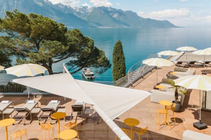 Ideally located in the heart of vibrant Montreux, this hotel offers stunning views of Lake Geneva and the majestic Alps. Guests can dine at Restaurant Safran, where a glass wall and scenic terrace showcase the breathtaking surroundings. The restaurant was recently awarded 13 points in the Gault & Millau guide, a testament to its quality and culinary excellence. The creative cuisine in the popular à la carte restaurant is complemented by wine produced in the local Lavaux vineyards. Your buffet breakfast is taken in the Bel Horizon restaurant, while there is also a range of relaxing apéritifs available in the Chill Bar and Lounge. During the summer months the Purple Fish is a popular lakeside terrace bar.
