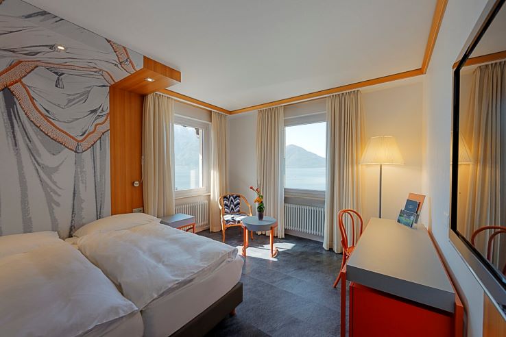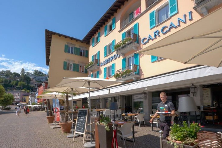 With a superb position beside the lake in pretty Ascona, the Albergo Carcani is a comfortable base for your holiday. The Italian style restaurant and pizzeria is very popular and has an inviting terrace next to the water's edge. A speciality of the house is the Risotto Flambé - saffron risotto & king prawns served in a Montasio cheese mold & flambéed with Americano house grappa. Hotel guests receive a 10% discount on the full restaurant menu. Breakfast can also be taken on the lakeside if you wish and includes a buffet with plenty of variety.