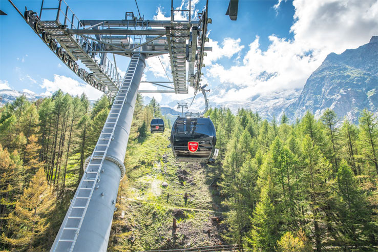 Travel to Spielboden where you are bound to see marmots, the comical little mountain dwellers, before a second journey to LÀngfluh. This is a magnificent location from which to enjoy the views of the Saas glacier, down to the village of Saas-Fee and towards the Dom which at 4,545m is one of the highest mountains in Switzerland.