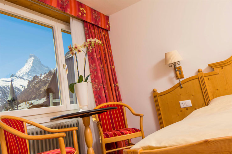 A - South facing Matterhorn view room with bath or shower:  Add £6 per person per night