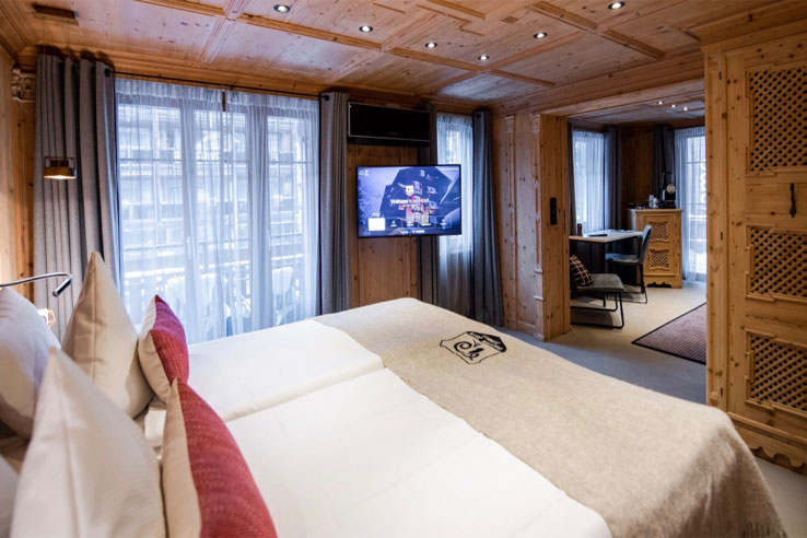 The attractive chalet-style rooms all feature a Nespresso coffee machine and cosy bedding made with wool from the hotel's own flock of black-nose sheep. Half board guests have a 'dine around' option including the Julen's own restaurant or the nearby Hotel Alpenhof. You can also book a traditional fondue for one of your meals during your stay, while the à la carte menu features specialities such as the local lamb. The comfortable Julen Lounge is a convivial place to meet for pre or after dinner drinks.