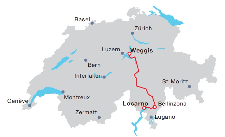 Your next adventure is at a leisurely pace with a 1st class lake cruise to Flüelen where you board the special 1st class panoramic train for your sedate journey which heads up the Reuss valley with ever changing views towards the historic Gotthard Pass. The line loops three times past the church at Wassen to the original 19th century Gotthard tunnel after which you dramatically arrive in the beautiful Ticino region of Switzerland. There is a slow looping decent to Bellinzona where you change for the short train journey to Locarno on Lake Maggiore.