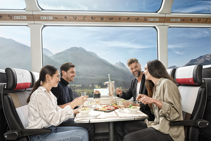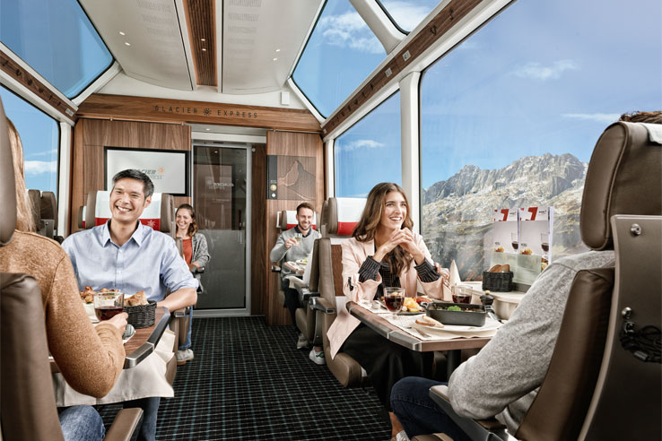 • Reserved seats and set lunch on the Glacier Express Zermatt-St. Moritz (2nd class)